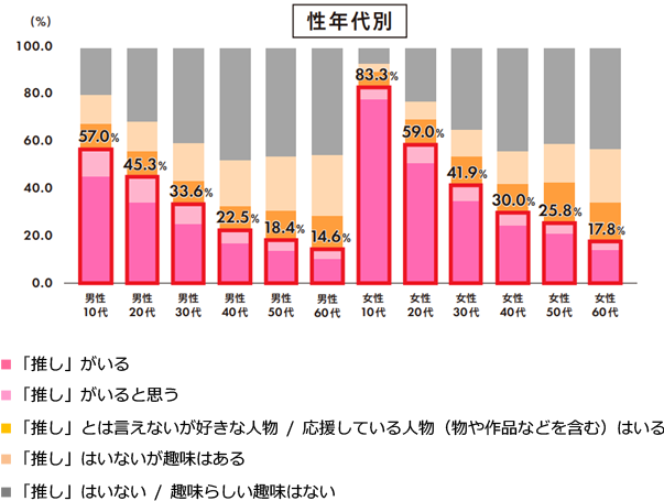※集計設問項目:「推し」がいる、「推し」がいると思う