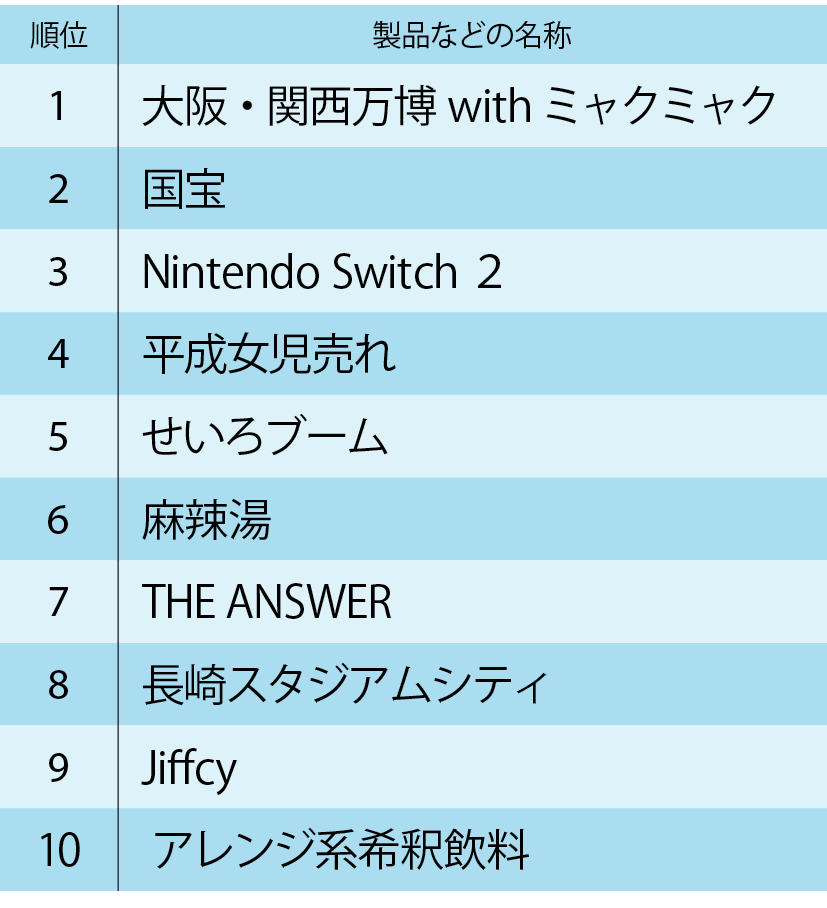 2025年ヒット商品ベスト10